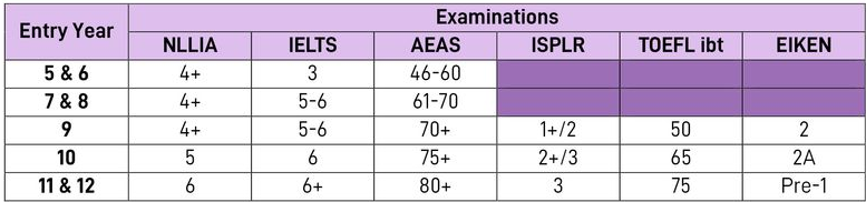 The AEAS Examination is preferred, particularly for Years 5 to 9. School-assessed written pieces of work in English may also be requested as part of the application. Please note that the scores above are a guide. Student interview determines the success of the application. All applications are assessed on an individual basis.