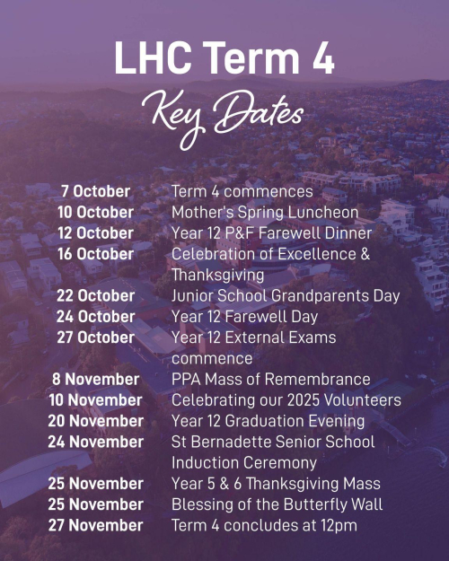 Term 4 celebrates the journey of our 2025 Year 12 students at LHC. On Sunday, we held the Graduation Dinner — a special opportunity for students, families, and staff to come together and reflect on this important milestone. Our celebrations continue next week with the Student Farewell Assembly on Friday.