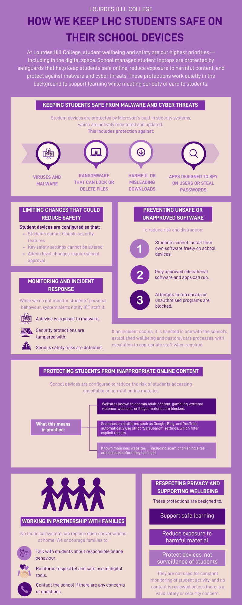 We encourage families to have ongoing conversations at home about appropriate online behaviour, digital wellbeing and the importance of balancing screen time. At school, we will continue to support students in developing the skills and awareness needed to navigate the online world with confidence and integrity.