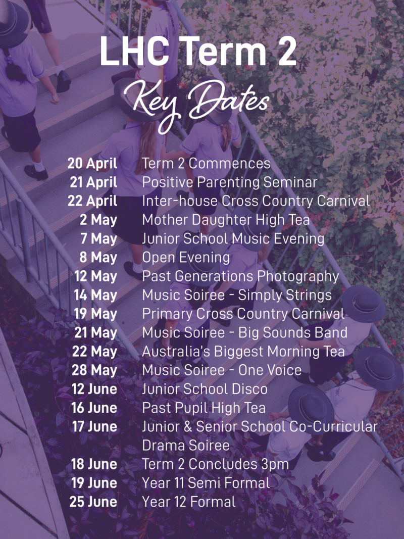 As we begin Term 2, we look forward to another busy and productive period of learning, growth, and engagement across the school. To help families stay informed and organised, we have outlined the key dates for Term 2 below. We encourage you to take note of these and keep them handy throughout the term.